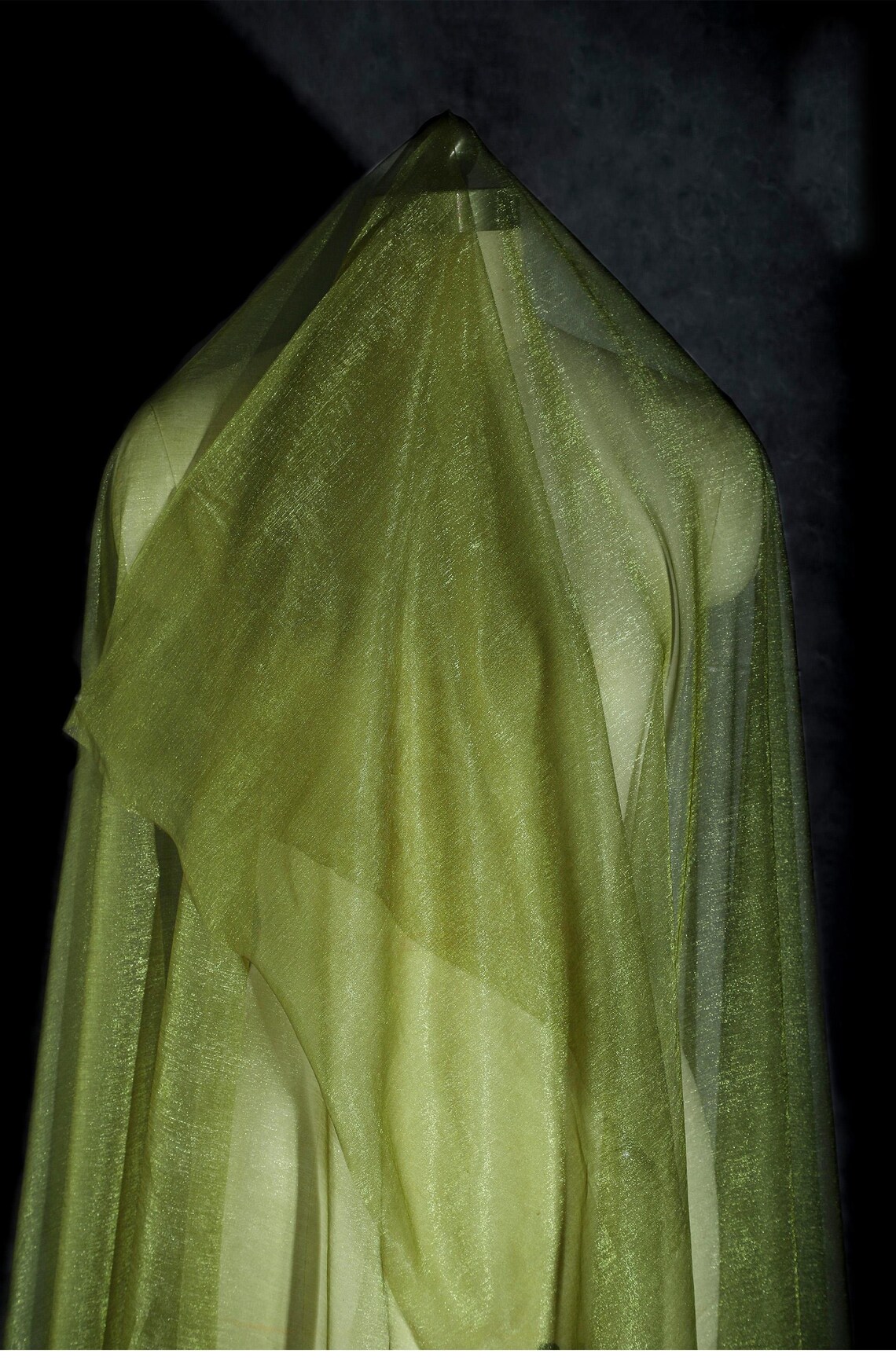 A fine, nearly invisible mesh material that offers a light stretch. It is often used for creating illusion necklines, sheer sleeves, and breathable linings in fitted garments and activewear.